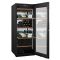 Double-temperature wine cellar for storage or service, with a maximum capacity of 204 bottles (Bordelaise type). This version is equipped with a gray, triple-glazed, tempered, UV-resistant glass door.