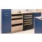 Built-in double-temperature wine service cabinet, adjustable from 5 to 12°C on the top and from 12 to 20°C on the bottom, with a capacity of 51 bottles.