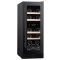 This model is equipped with a double-glazed door made of tempered glass, with a black door frame in organic glass. White LED interior lighting enhances bottle visibility and cellar design. The upper zone can accommodate up to 16 bottles, and the lower zone 35 bottles.