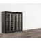 - 112 bottles, inclined on aluminium tubes, of which 64 are inclined towards the front, with the label visible, and 48 are inclined towards the back, which are not visible but accessible. The maximum diameter of the bottles is 120mm, which allows for most 75cl and magnum sizes from all regions (Bordeaux, Burgundy, Champagne).