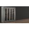 Inclined layout : this showcase can hold up to 224 bottles, inclined on aluminium tubes, of which 128 are inclined towards the front, with the label visible, and 96 are inclined towards the back, which are not visible but accessible. The maximum diameter of the bottles is 120mm, which allows for most 75cl and magnum sizes from all regions (Bordeaux, Burgundy, Champagne).
