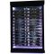 Both lateral sides are equipped with 9 large transparent Plexiglas shelves. The Backside is equipped with 7 smaller transparent Plexiglas shelves. Capacity of 326 bottles