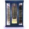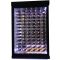 One lateral side is equipped with 9 transparent Plexiglas shelves. The opposite side is equipped with 6 chromed suspending hangers for 13 bottles. The Backside is equipped with 3 suspending hangers for 10 bottles. Capacity 250 bottles