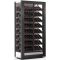 Inclined layout : this showcase can hold up to 112 bottles, inclined on aluminium tubes, of which 64 are inclined towards the front, with the label visible, and 48 are inclined towards the back, which are not visible but accessible. The maximum diameter of the bottles is 120mm, which allows for most 75cl and magnum sizes from all regions (Bordeaux, Burgundy, Champagne).